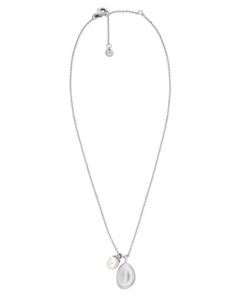 Skagen ženska ogrlica od nerđajućeg čelika sa dva priveska od kojih je jedan (manji) slatkovodni biser.