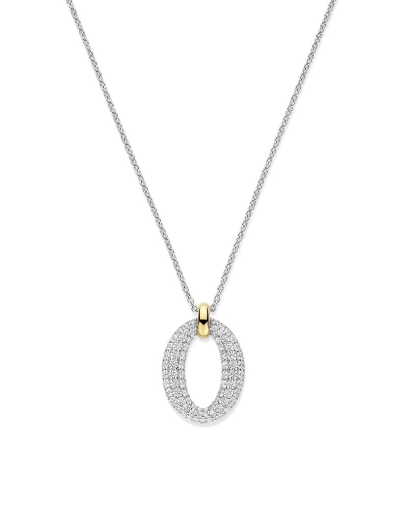 Ogrlica sa ovalnim priveskom podesive dužine od 38 cm do 48 cm.